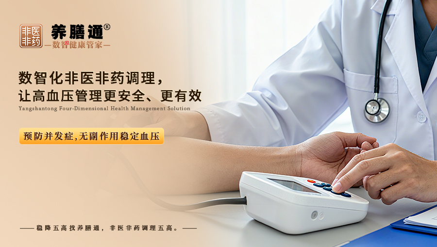 高血压非医非药调理的核心目标是 “无副作用稳定血压、预防并发症、减少药物依赖”,而传统非药物干预往往因 “方案不精准、执行无监督、效果难追踪” 导致失败。养膳通的数智化非医非药闭环方案,通过以下优势解决痛点: