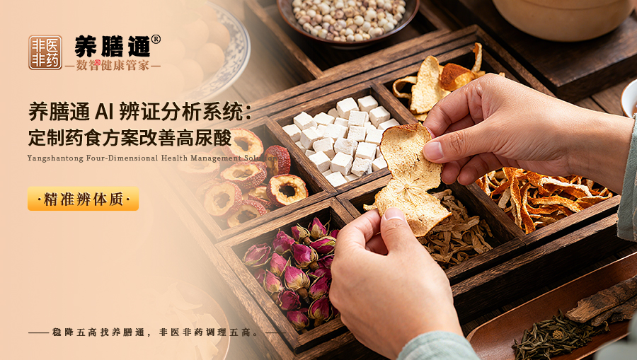 高尿酸的防治关键在于 “对症调理”,而 “体质差异” 是导致调理效果参差不齐的核心原因 —— 同样是高尿酸,湿热内蕴体质需清热利湿,痰湿体质需健脾祛湿,盲目干预易导致 “降酸无效” 甚至 “加重身体负担”。养膳通依托 “AI 辨证分析系统”,融合古籍智慧与海量临床案例,精准识别高尿酸人群体质,输出定制化药食同源方案,同时结合高尿酸诱因与饮食禁忌,从根源破解 “调理难、易反复” 的困境,为高尿酸管理注入数智化新动能。